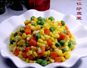 小菜特点;色泽艳丽、甜咸适中、味道鲜美、营养丰富、老少皆宜、制作快捷。温馨提示;1、甜玉米粒无论使用袋装速冻的还是整棵的鲜玉米来剥粒,都要选择颗粒饱满较嫩的为最好,这样炒出的菜才会颗粒饱满既好吃又美观。2、这道菜以咸甜适中为最好,因此盐和糖的比例要掌握好,既可吃出咸味又能品出甜味才最地道。3、制作此菜的原料可不必焯水,只需用油炒即可,按顺序先放胡罗卜粒使水溶性维生素散发出来再放其他原料。大炒勺的这道营养丰富的快捷家常小炒“松仁炒玉米”就做好了,供朋友们参考!