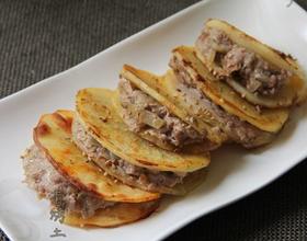 - 5. 切好的土豆夹放入烤肉料、油搅拌,腌制20分钟。