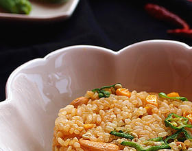 - 13. 将炒好的饭放入碗里。