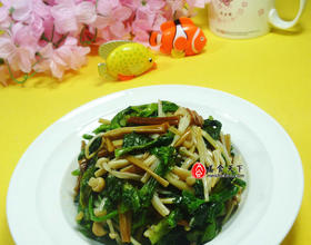 - 3. 将已清洗好的黄金针姑下入沸水中焯一下捞出。