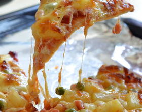 - 12. 放入预热200度的烤箱中烤10分钟,或看到饼底呈金黄色,取出。再撒上剩下的奶酪,送入烤箱再烤5分钟。