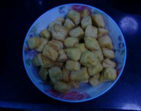 锅中放油,油热后放花椒面和葱爆香,然后放青椒,胡萝卜翻炒几下断生后放入豆泡翻炒。