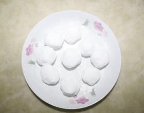 放入粉中裹粉。照前一步骤。翻来覆去的做