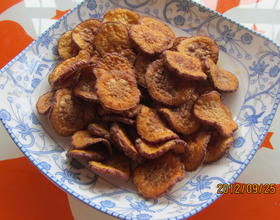 捞出控净油,装盘。晾凉后,又酥又脆的地瓜干可做零食,一点不比买现成的逊色。