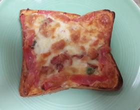 - 9. 土司上四周放好烤肠继续加切成小块的虾