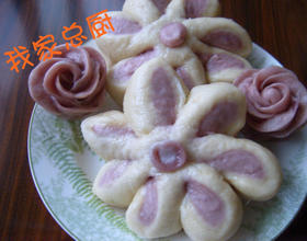 - 3. 用温开水化开酵母,放入面粉和和好的紫薯泥,和成紫薯面团。