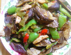 下肉片翻炒,加料酒去腥,八分熟出锅备用