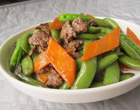 - 1. 主料:甜蜜豆,牛肉,胡萝卜调料:油 盐 胡萝卜 生粉 生抽 葡萄酒 腐乳 胡椒粉