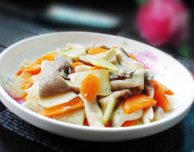 加入平菇炒匀,加一点点鸡精调味即可出锅。
