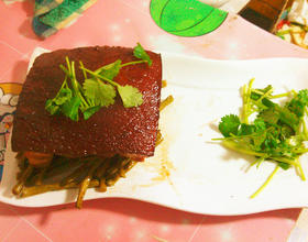 - 8. 蒸好的肉取出,装盘,将原汤倒入锅里勾芡,淋在蒸好的肉上。