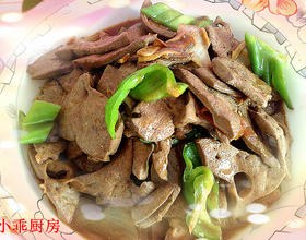 - 1. 猪肝洗干净后切薄片,洋葱,辣椒切菱形片。