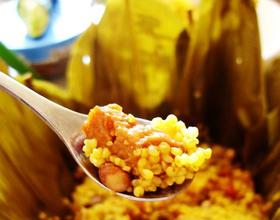 - 1. 干粽叶泡一夜,泡好后好好清洗几遍,锅内烧开水煮粽叶5分钟消毒杀菌,捞出自然晾凉。黄米泡一夜,泡好后洗净沥干水分备用。花豇豆提前一夜泡好,时间越长越好,软烂的花豇豆才能好吃。葡萄干用凉水泡5分钟即可。