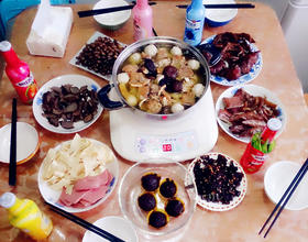 - 6. 小菜的部分根据自己的喜好配置吧~加入适量的盐和鸡精,盖上盖子再煮一下,等锅里的所有食材都熟了,就可以开动啦~锅里的食材吃完后,再烫自己喜欢的其他菜色吧~