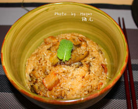 - 9. 把炒好的茄子倒入泡好米的电饭煲里,按开始键焖米饭。