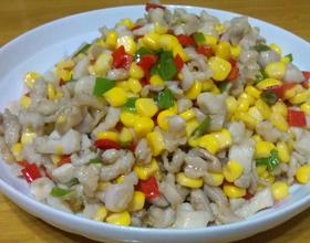 - 2. 炒锅内加少许玉米油,下玉米粒加适量盐炒至水汽蒸发至亮油后,加入青红甜椒丁,炒至有浓郁的甜椒玉米香后起锅备用。