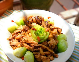 姜洗净切片,香菇提前泡发切条(泡香菇的水留着,后面有用),油菜洗净每棵切成四块。
