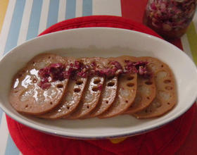 1、糯米藕凉吃、热吃均可,吃的时候淋上喜欢的蜜汁,我是用了自己做的玫瑰蜜,散发着玫瑰的清香,甜香。2、煮完莲藕的汤水不要倒掉,加入蜂蜜或冰糖是很好的饮品呢。