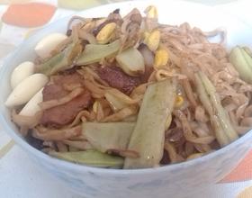 倒入黄豆芽、豆角。其实用四季豆还是长豆角都行,可随着季节而定。