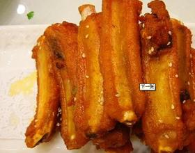 油烧到二成热,把排骨放入锅中,油温由低至高慢慢炸制,至肋排成熟、外皮结壳取出沥干油