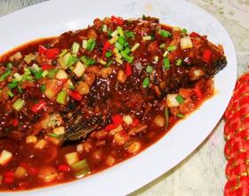 加料酒、醋、白糖、生抽翻炒后,加水烧开,加大葱、红辣椒,再将鱼放入烧2分钟。待鱼吸收汤汁后,加入淀粉、鸡精收敛汤汁。