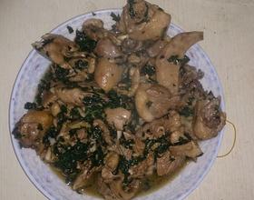 - 5. 首先将切好的紫苏,下蒜蓉炒香。(待用)