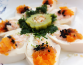 1、镶在豆腐上的馅,可以随自己的喜好,自由变化。2、南豆腐容易入味,但易碎,所以切的时候要小心。3、打芹菜末时,加入一点点水。打好后,过滤,取芹菜叶末。4、然而胡萝卜泥就没有必要加水了。
