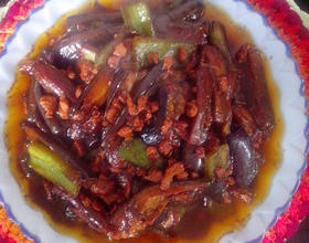 茄子炒软放入肉丁和青椒放入调料,倒一点老抽调色,再将酱放入翻炒至全熟即可