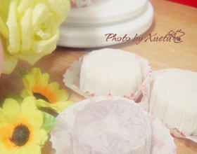 - 12. 开始做皮,我也做了两种颜色的皮白色饼皮材料:糯米粉50克 粘米粉30克 小麦淀粉 20克牛奶190克 糖40克 玉米油20ml紫色饼皮材料:糯米粉30克 粘米粉10克 小麦淀粉10克 紫薯泥40克,牛奶约150克 糖25克 玉米油10ml 另外准备手粉少许:糯米粉炒制微黄,有香味飘出即可(有微波炉的可以用微波加热至熟或者直接入烤箱烤熟)做法:1、准备好做月饼皮的食材