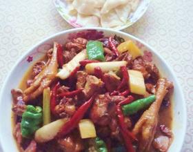 炒糖色时,必须用小火慢炒,才放入鸡肉翻炒上色,过大的火候会让糖有苦味。大盘鸡的口味偏重辣,麻辣味主要来源于指天椒和花椒,怕辣者可少放点。大盘鸡起锅前要转大火收至汤汁呈浓稠状,可使鸡肉和土豆的味道更佳。建议用宽面条拌汤汁吃,宽面条可吸收更多汤汁也更入味。不吃辣椒的可以少放,在新疆老板一般会问,要一般辣或特辣的。煮熟的皮带面非常有嚼劲,在鲜辣的鸡汁里一拌哪个美味啊,这后面的鸡汁拌面片是比前面的鸡肉还要好吃的。