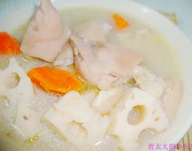 加入莲藕块及胡萝卜块,文火炖1个半小时,出国加盐即可