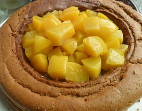 将慕斯馅倒入里面(慕斯馅可以参照我的巧克力慕斯蛋糕的做法)放入冰箱冷冻4小时