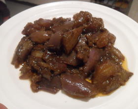 茄子熟后 收干水 加入油炒 一分钟 再加入 盐 酱油 糖 醋 番茄酱一起炒 收汁即可