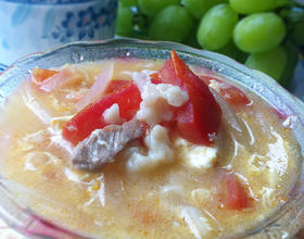 - 9. 此时面粉用流动的水慢慢搅成雪花状,待水开后倒入锅入拌匀!