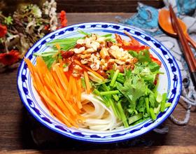 - 9. 加入黄瓜、红萝卜、红椒、香菜、花生碎