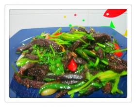 - 6. 牛肉变干了下小辣椒段翻炒十几秒、调入生抽翻炒几下,加盐少许白糖提味,味精翻炒均匀,撒上孜然在下入香菜翻炒几下即可