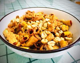 2.没有烤箱,可酱花生用开水煮5分钟左右,皮就极易脱落,然后冷油下锅,炸至微黄色捞出。