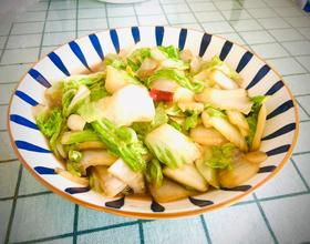 1.先炒白菜梗,断生后再放白菜叶。