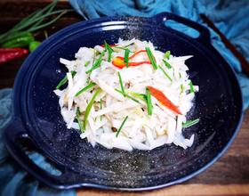 藕丝用清水洗去表面淀粉,焯水的时候就会更清透,入锅炒的时候加点水可以更容易入味