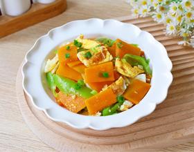 南瓜去皮去瓤切成薄片,青椒切片,蒜切末