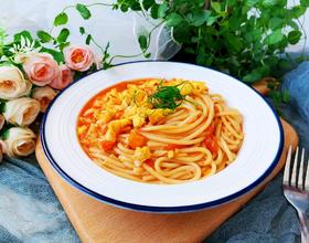 - 13. 盛入盘中,美味营养的番茄鸡蛋意大利面就做好了