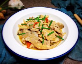 起锅热油,放入瘦肉,炒至变色,摆一边