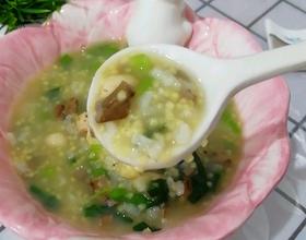 煮粥期间把菠菜焯水切碎,把盐水猪肝切成小粒备用。