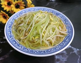 莴笋榨菜不需要长时间烧,所以黄豆芽需要提前烧一下至基本熟。