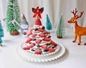 - 18. 依次叠加直至饼皮用完,最上面用草莓装饰