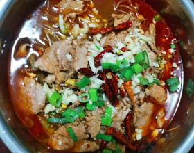 - 5. 超出红油后加水放入盐,鸡精,白糖,煮两三分钟,捞出料渣