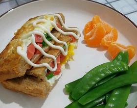 吐司片,鸡蛋,火腿肠,葱花