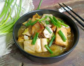 腊肉带咸味,焯水可以减少咸味,豆腐中要少加盐,它会吸收腊肉的咸味。