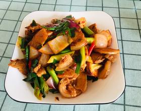 1.肉煮至七八成熟,肉片切大一点,煽出油脂,使肉片微微收缩。