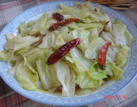 坐锅倒油,待油四成热下葱姜丝爆香,倒入圆白菜翻炒再倒入米醋和白糖调成的碗汁。最后撒盐、鸡精湿淀粉勾芡翻炒出锅即成。