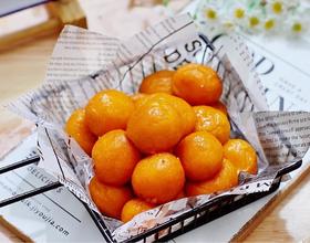 锅中倒入适量的食用油烧至七成热时,放入红薯芝士球,炸至金黄色
